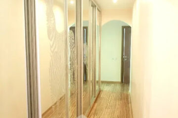Великий хол з дзеркалом та достатньою кількістю місць для зберігання. У коридорі встановлена велика дзеркальна шафа-купе до стелі.